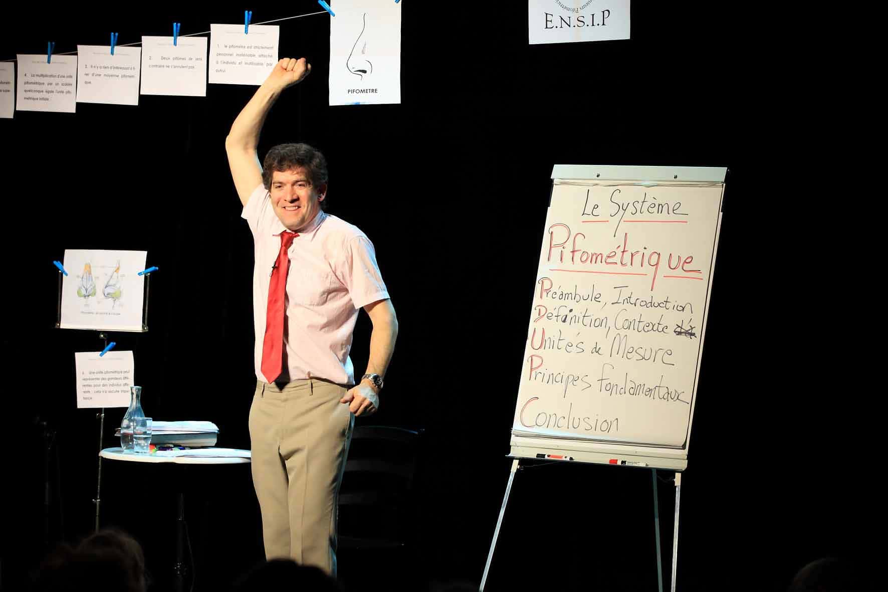L’Éloge de la Pifométrie est une vraie fausse conférence à caractère « scientifique » couvrant une large part du domaine de l’à peu près ! Le propos est de définir une bonne fois pour toute la taille précise d’un Chouïa, l’épaisseur d’une Lichette…